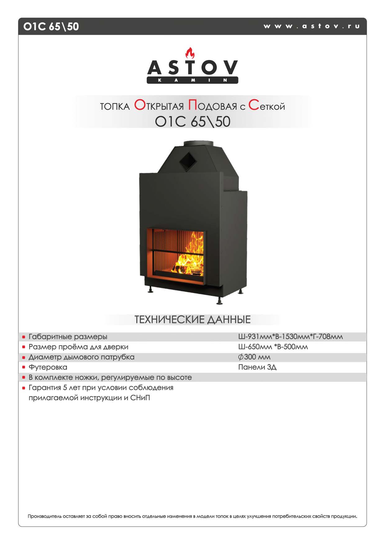 Открытая каминная топка Астов О1С 65/50 с сеткой – это идеальное решение для тех, кто хочет наслаждаться видом живого огня и при этом заботится о безопасности и удобстве использования.